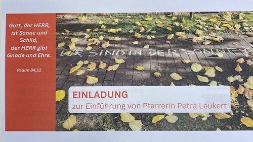 Heute feiern wir einen besonderen Gottesdienst. Die Einführung unserer neuen Pfarrerin Petra Leukert. Als Gast wird Superintendent Florian Kunst den Gottesdienst mitgestalten.
